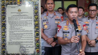 "Apabila ditemukan perbuatan yang bertentangan dengan maklumat ini, maka setiap anggota Polri wajib melakukan tindakan kepolisian yang diperlukan sesuai ketentuan peraturan dan perundang-undangan yang berlaku," tegas Idham dalam maklumatnya(cpas)